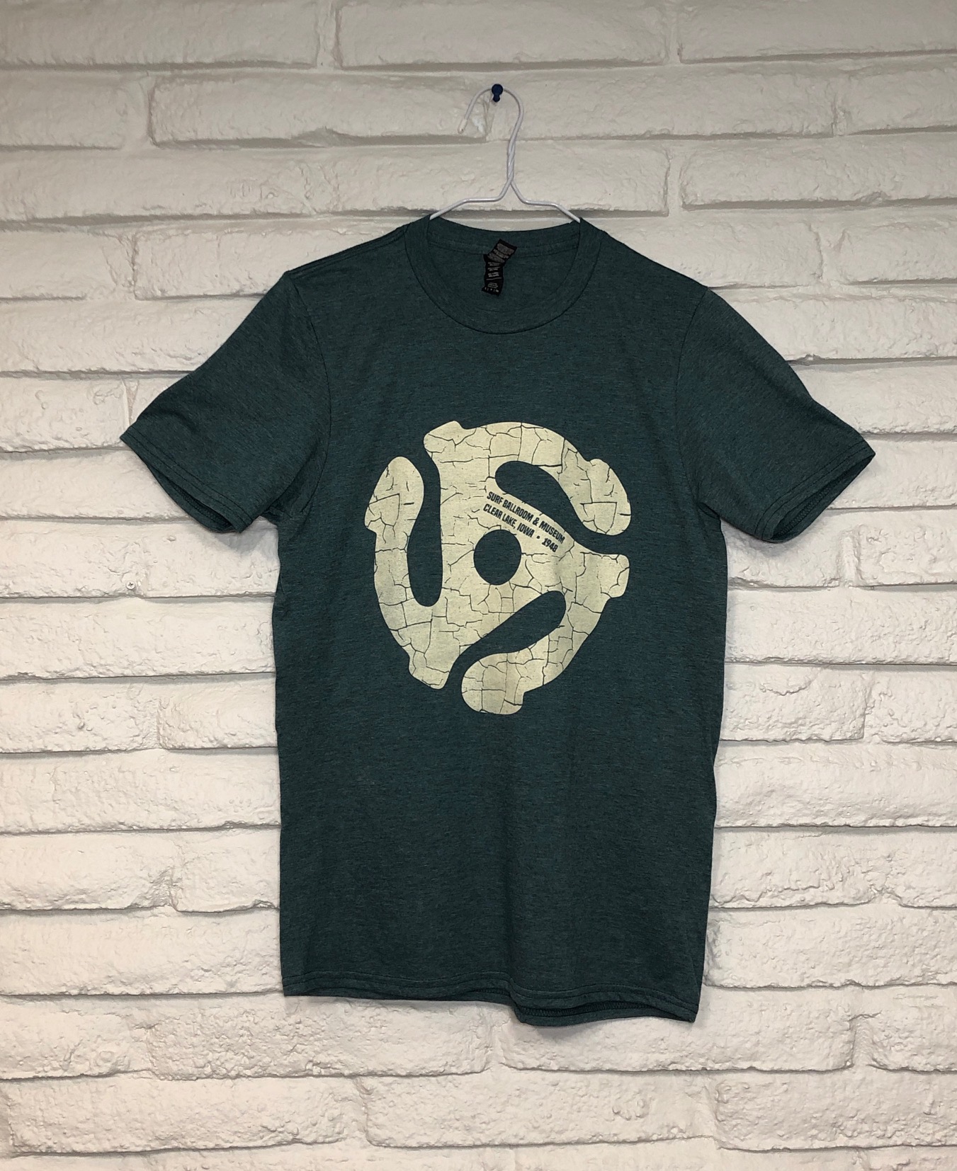 Kelly Green 45 Adapter Tee 45 rpm adapter (also 45 rpm record insert, Spindle, 45 rpm spindle adapter, 7-inch adapter or spider, the common size of 45 RPM records) is a small plastic or metal insert that goes in the middle of a 45-rpm record so it can be played on the standard size spindle of a turntable.