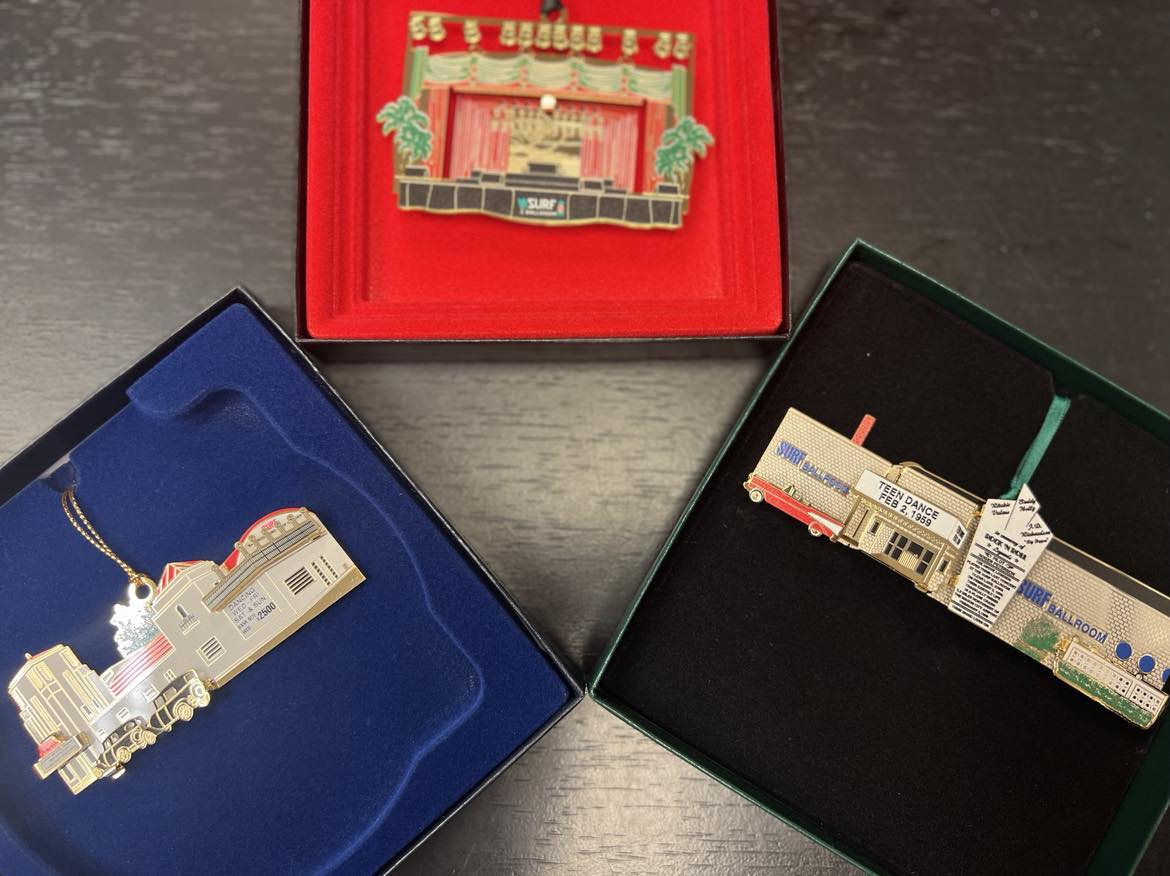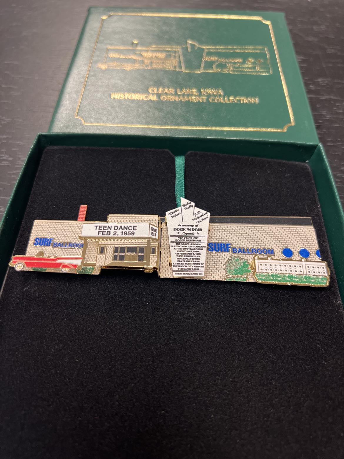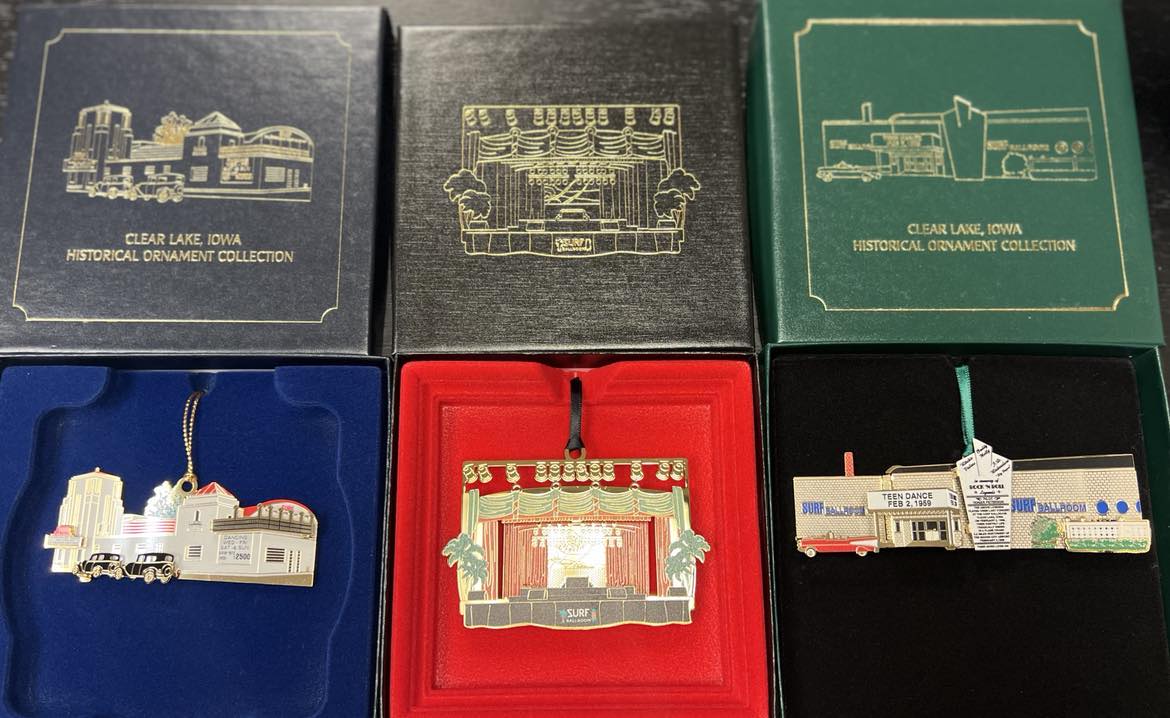 Surf Ballroom keepsake ornaments make great gifts! They come in 3 designs: the original Surf Ballroom (circa 1933), the current Surf Ballroom (circa 1948) and NEW the Surf Ballroom historic stage ornament.