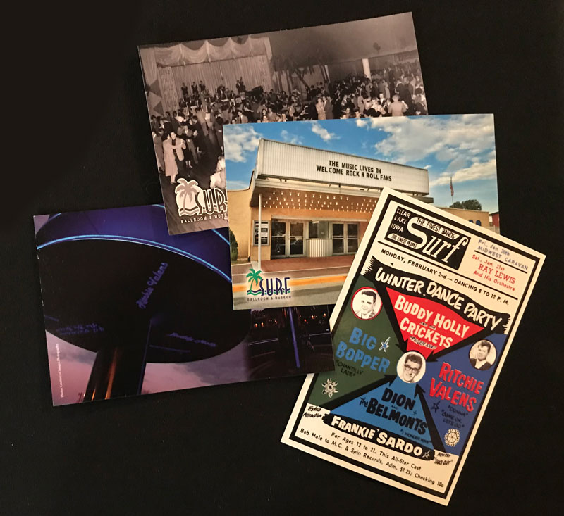 Postcard – Dancing, Postcard – Surf Ballroom Exterior, Postcard – Three Stars Plaza, Postcard – Winter Dance Party